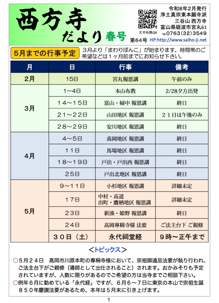 最新の西方寺だより